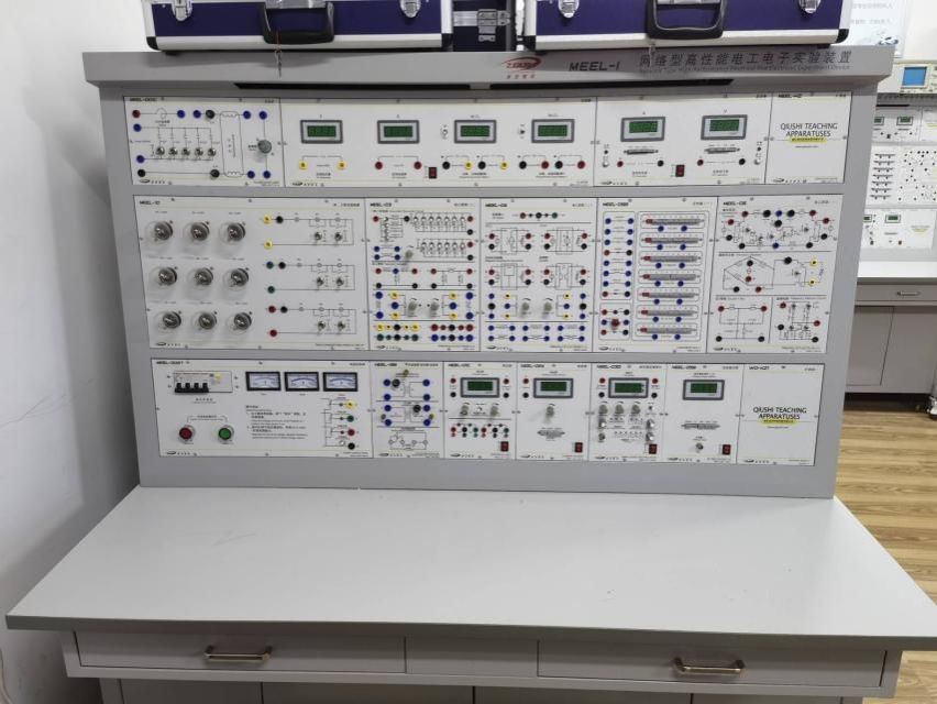 该实验室可开设:一阶RC电路过渡过程研究、交流电路等效参数的测量、叠加定理及电源特性研究、集成运算放大器实现的运算电路、中规模组合逻辑电路设计、触发器的功能测试及其应用等二十余项实验项目。