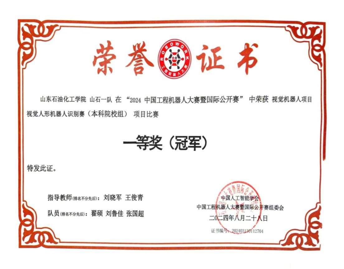 2024年8月,获“中国工程机器人大赛暨国际公开赛”国家级一等奖;