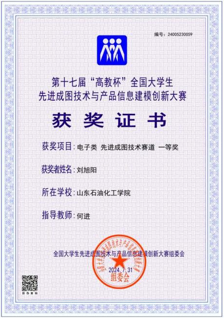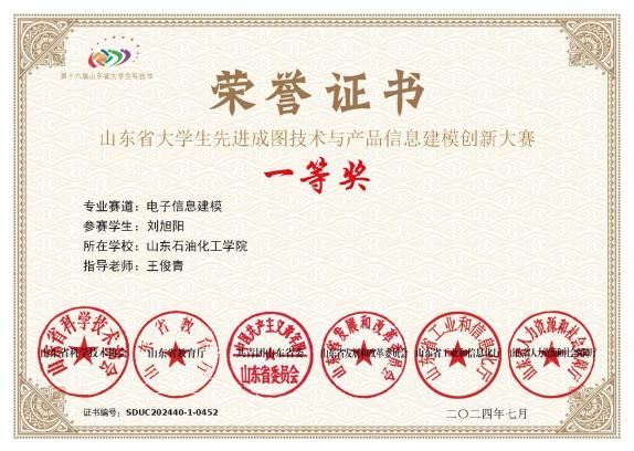 2024.7获山东省大学生先进成图技术与产品信息建模创新大赛个人一等奖;