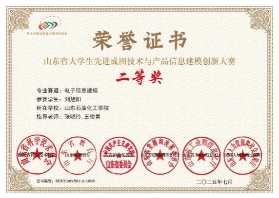 2025.7获山东省大学生先进成图技术与产品信息建模创新大赛个人二等奖;