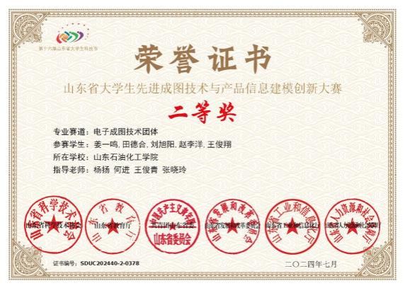 2024.7获山东省大学生先进成图技术与产品信息建模创新大赛团体二等奖;