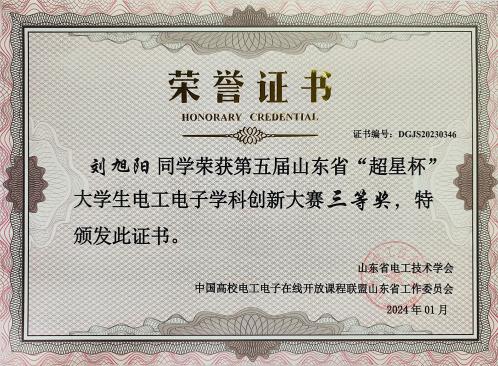 2024.1获山东省大学生电工电子学科创新大赛三等奖;
